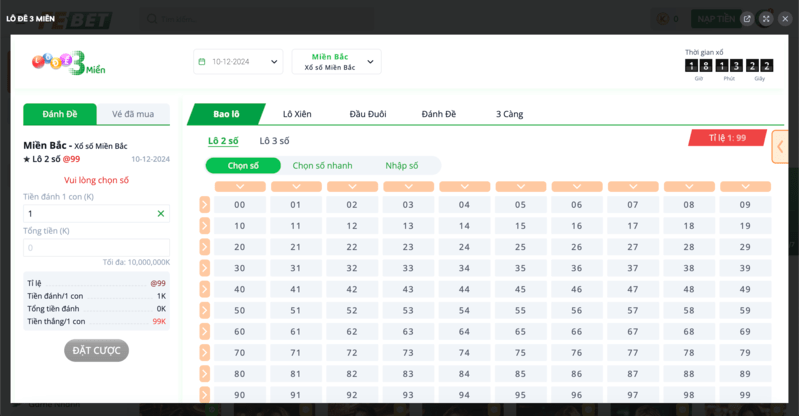 Không những thế, FEBET còn có cả khu vực dành riêng cho xổ số, lô đề với tỷ lệ trúng thưởng cực cao lên đến 1 ăn 99.