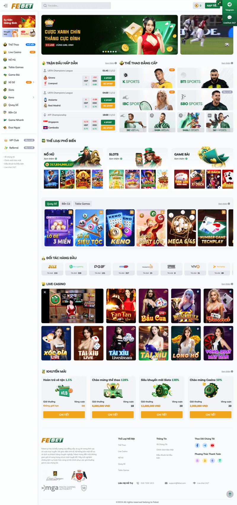 Hiện giờ, FEBET đang là một trong những thương hiệu casino nổi bật nhất ở khu vực Đông Nam Á với các sản phẩm cá cược chất lượng cao.